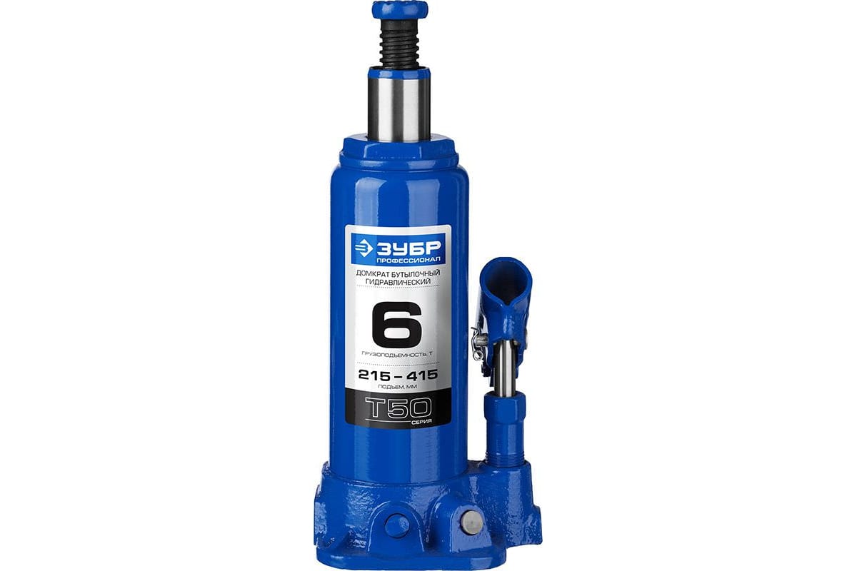 Гидравлический бутылочный домкрат 6т, 215-415мм, в кейсе ЗУБР T50 43060-6-K_z01 обладает хорошей грузоподъемностью, которая обеспечивает эффективную работу в автомастерской при обследовании подвески и ходовой автомобиля.