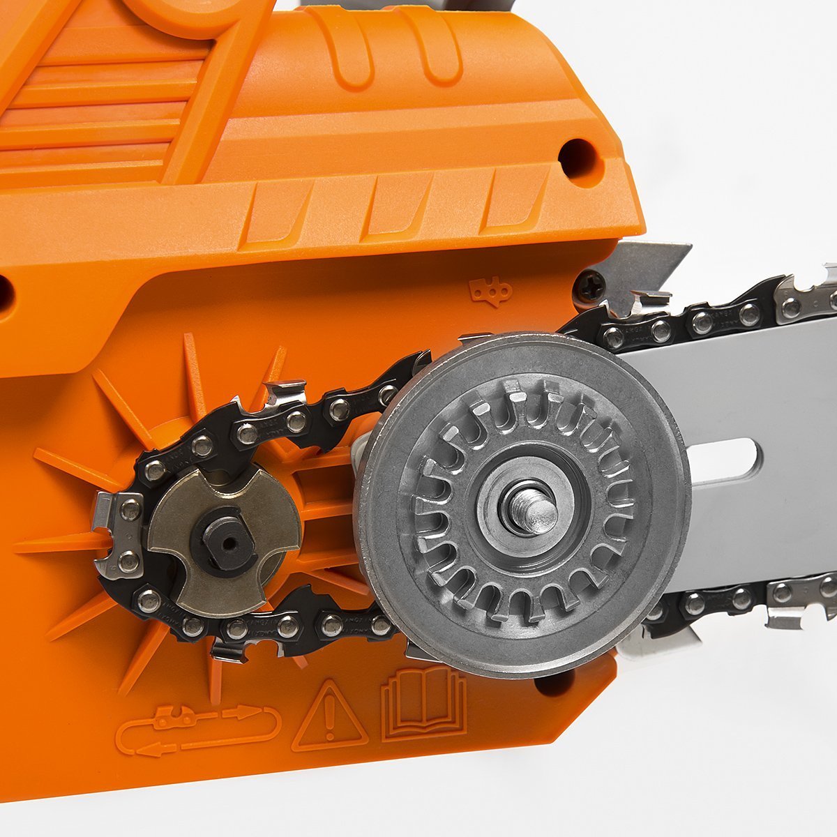 Металлическая ведущая звездочка гарантирует долговечность и надежность работы электропил.