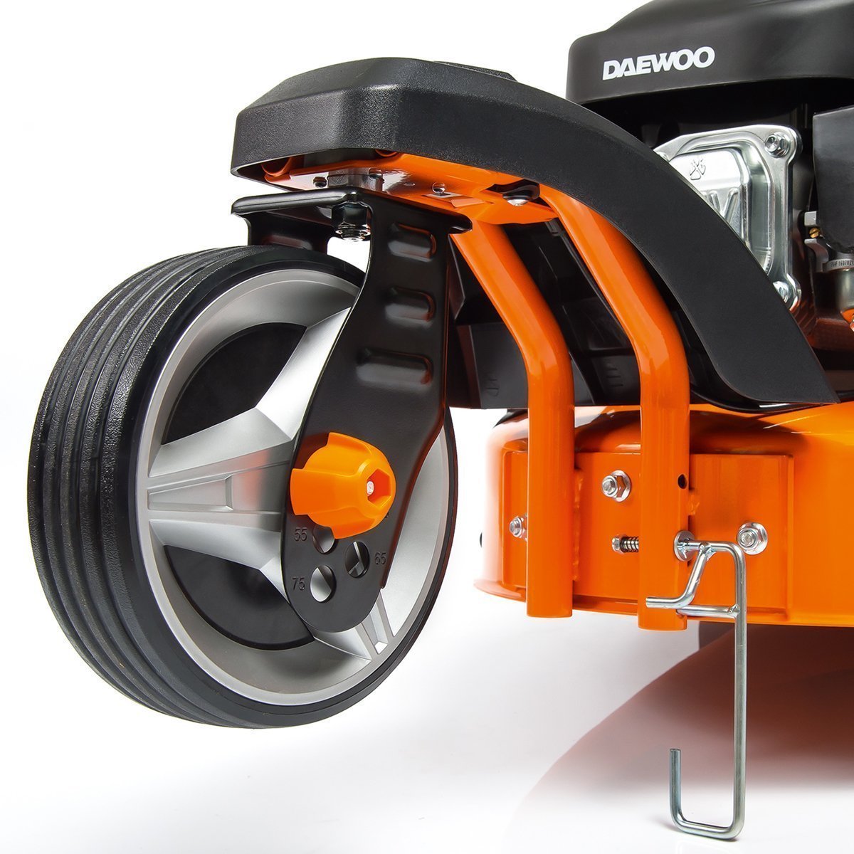 Бензиновая газонокосилка DAEWOO DLM 5100SR обеспечивает ширину скашивания 50 см. Имеет переднее поворотное колесо, что гарантирует маневренность на сложных участках. Выполняет кошение травы, сбор в емкий контейнер, мульчирование и боковой выброс. Механический привод обеспечивает стабильное вращение задних колес. Косилка не занимает много места при хранении благодаря складной рукоятке.