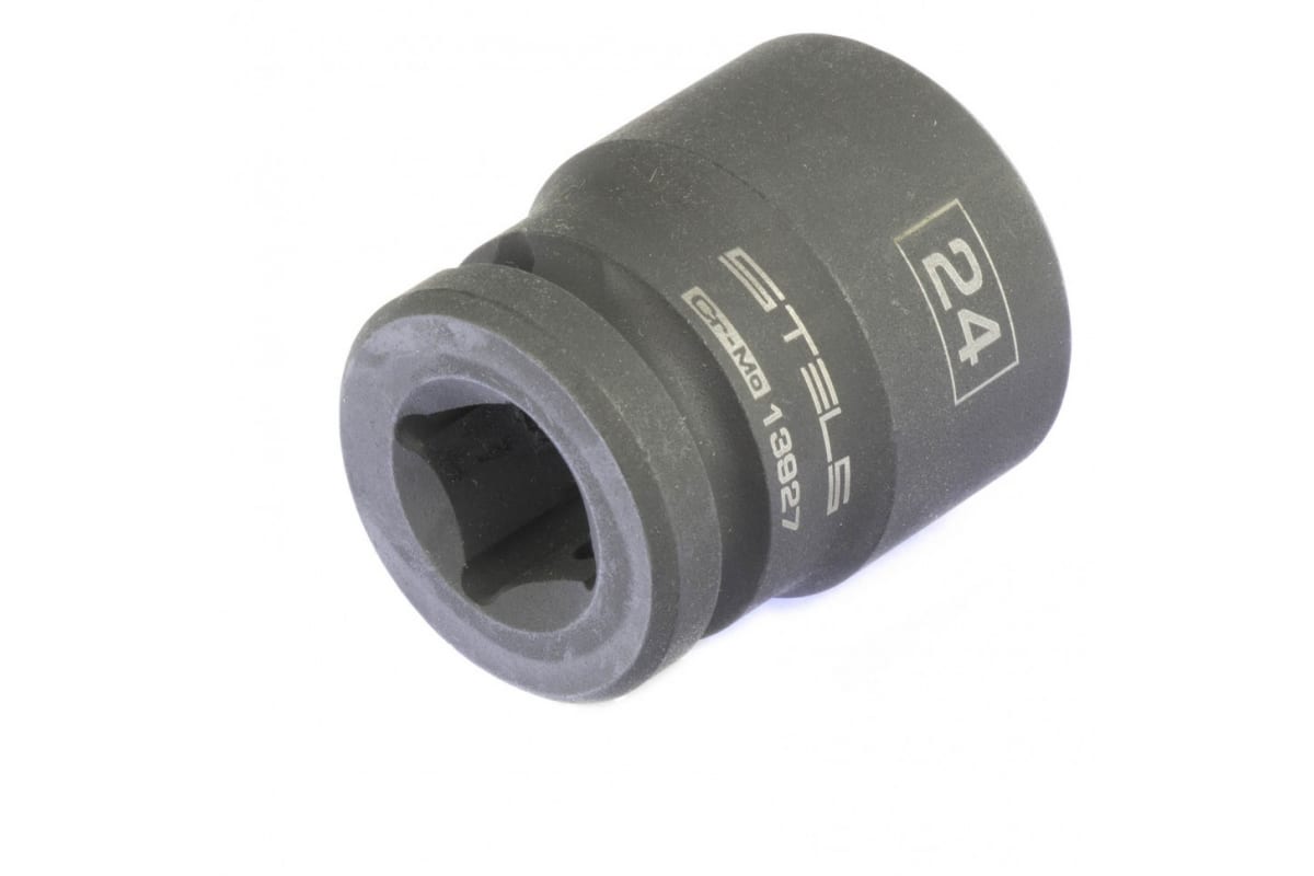 Ударная шестигранная головка Stels 13927 размером 24 мм, из стали CrMo, с присоединительным квадратом 1/2 дюйма, — сменная насадка для электрических и пневматических гайковертов.
