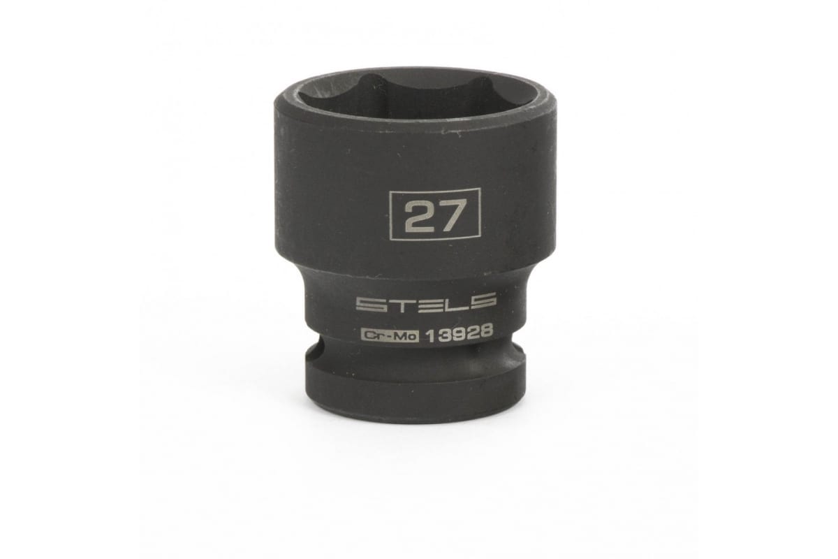 Ударная шестигранная головка Stels 13928 размером 27 мм, из стали CrMo, с присоединительным квадратом 1/2 дюйма, — сменная насадка для электрических и пневматических гайковертов.