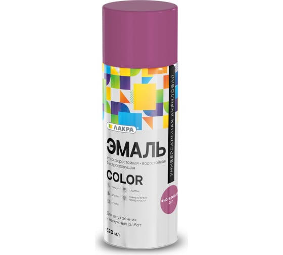 Аэрозольная эмаль ЛАКРА Color универсальная, фиолетовый 327 Лк-00012487 - высококачественная быстросохнущая акриловая эмаль используется в декоративных работах, строительстве и ремонте.