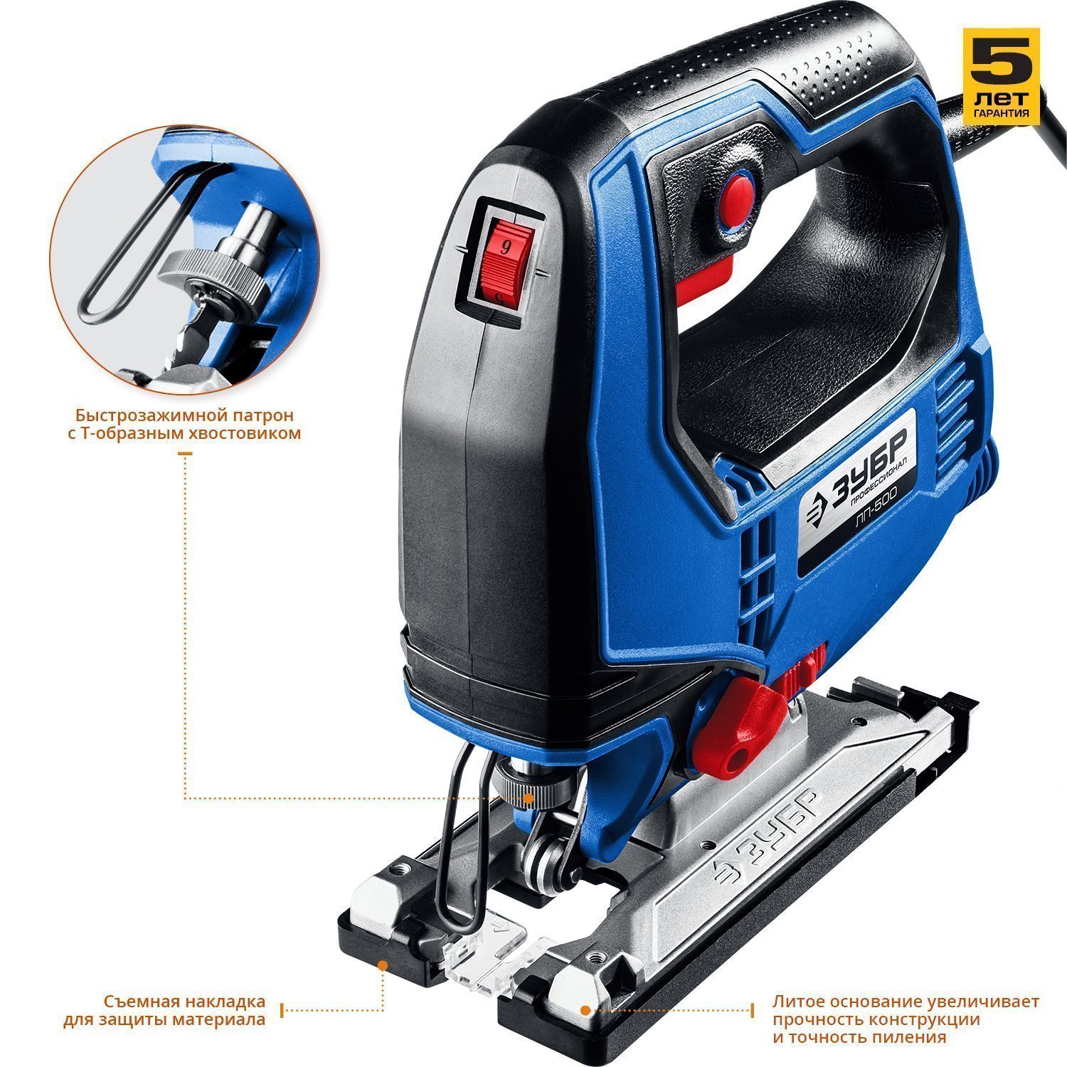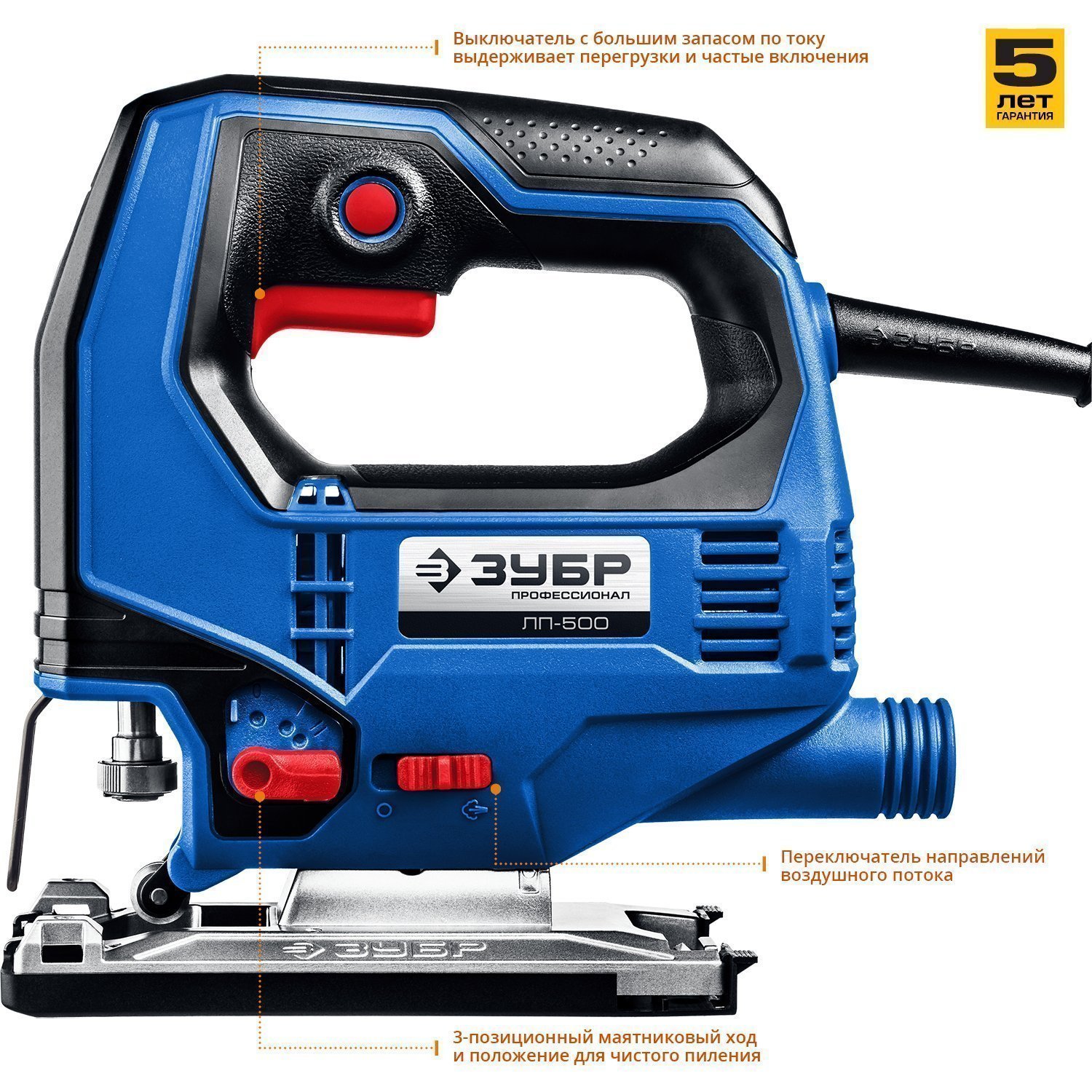 Профессиональный лобзик ЛП-500 ЗУБР для всех видов пиления различных материалов. Компактный и мощный, с удобным хватом и отличной маневренностью. Полезные "мелочи" вроде вставки для чистого пиления и переключения направлений обдува помогают работать комфортно и эффективно.