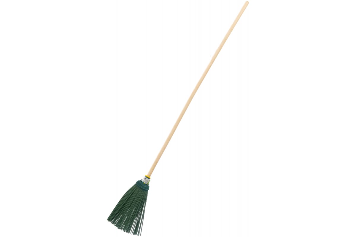 Рабочая часть из полипропилена отличается гибкостью и прочностью. Деревянный черенок удобен для удержания. Длина в сборе - 1525 мм.