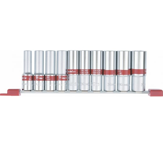 Набор MATRIX 13590 состоит из торцевых головок увеличенной длины наиболее распространенных размеров, которые используются для монтажа/демонтажа крепежных изделий. Выполнены из качественной хром-ванадиевой стали и отполированы, что делает их устойчивыми к коррозии и износу. Твердость материала рабочих частей головок составляет 42 HRC, что соответствует требованиям ГОСТа. Изделия имеют шестигранный рабочий профиль, обладают большим рабочим ресурсом и обеспечивают высокую эффективность завинчивания, поэтому их широко используют на производстве и в автосервисах. Поставляются на металлической планке под квадрат 1/2", упакованы в блистер.