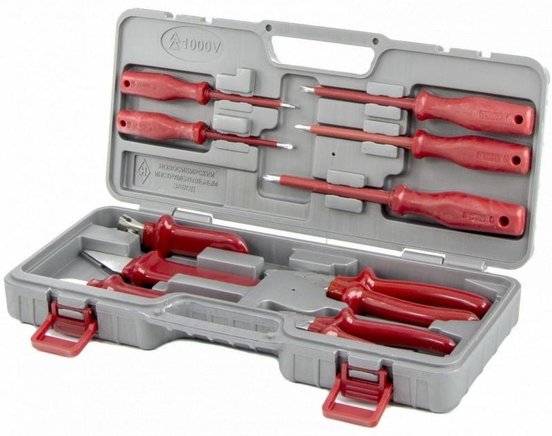 Набор слесарного инструмента с изолированным покрытием НИЗ "Электромонтажник-3" предназначен для выполнения ремонтных работ в действующих электроустановках напряжением до 1000 В переменного и 1500 В постоянного тока, без отключения электроэнергии. Инструмент соответствует высоким требованиям международных, межгосударственных стандартов по электрическим, механическим, термическим параметрам. Все комплектующие набора изготовлены из высококачественных сталей. Инструмент имеет широкий температурный диапазон эксплуатации от -20 до +70 С.