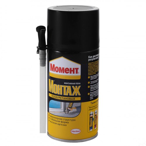 Монтажная пена Момент - однокомпонентная полиуретановая пена для монтажа и герметизации оконных и дверных блоков, других строительных конструкций, термоизоляции трубопроводов и сантехнического оборудования, уплотнения швов, заполнения трещин, пустот, щелей.