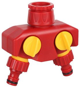 Применяется для одновременного подключения двух водозаборных линий к водопроводной трубе или крану с внешней резьбой 1/2" или 3/4"