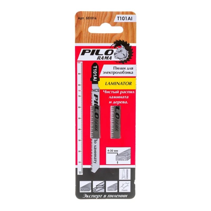 Пилки для лобзика Pilorama T101AI 2 шт 551016 - это сменный пильный элемент по дереву и ламинату для лобзиков. Широкое полотно предназначено для прямолинейной распиловки, суженное полотно обеспечивает возможность фигурного распила.