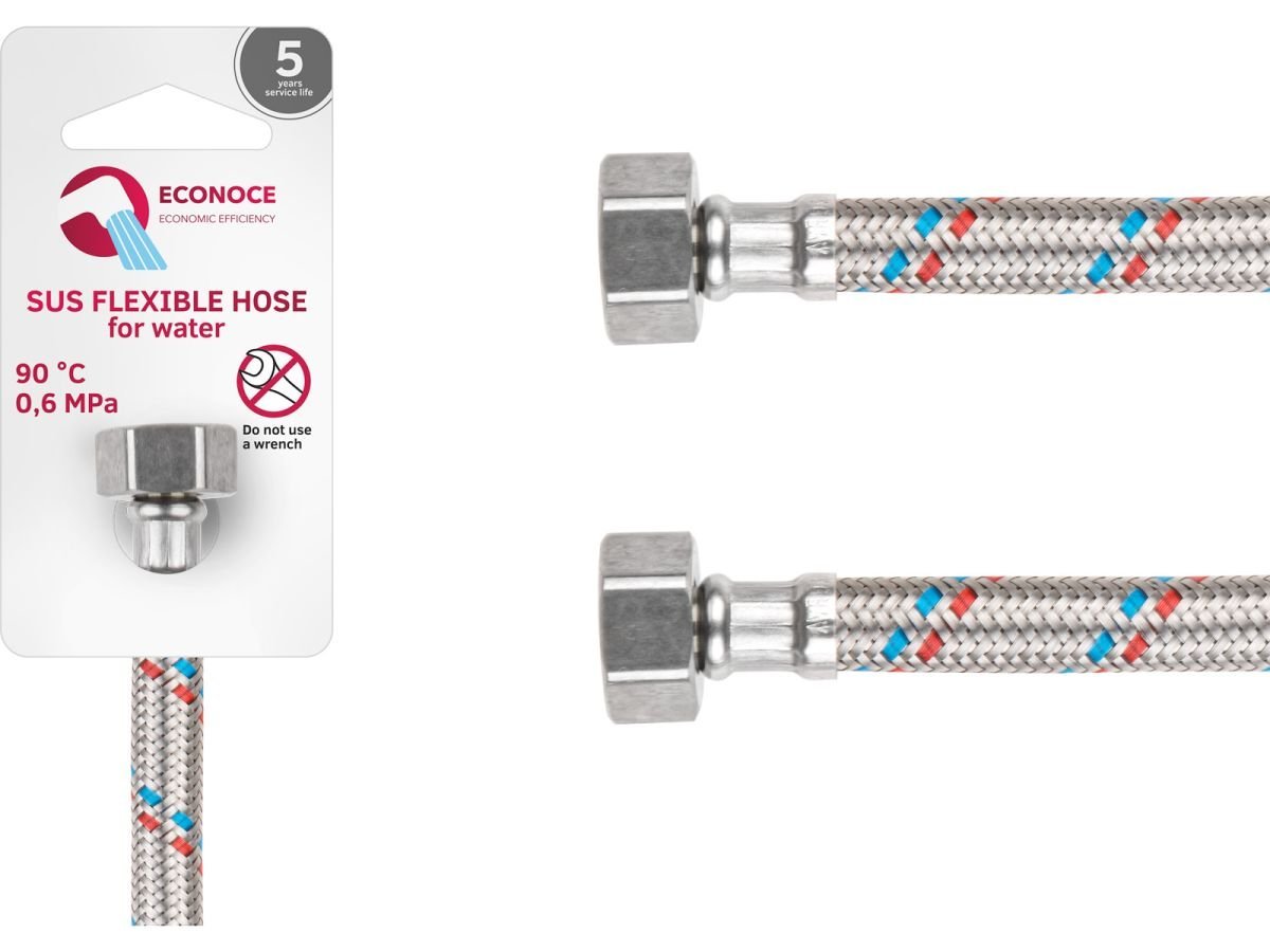 Гибкая подводка для воды от ECONOCE - это универсальное и практичное решение для надежного подключения сантехнических приборов (смесителей, унитазов, водонагревателей, стиральных и посудомоечных машин) к системе водоснабжения. Она обеспечивает герметичное соединение, простоту и скорость монтажа благодаря своей гибкости, а также компенсирует вибрации оборудования. Это позволяет легко установить прибор даже в стесненных условиях ванной, туалета или кухни.