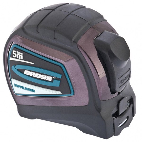 Рулетка Doppelhaken торговой марки GROSS с длиной ленты 5 м и шириной 25 мм. Сочетание ABS-пластика и термопластичной резины позволяет сохранить работоспособность при резких изменениях температуры, а также при падении с высоты до 1,5 м. Измерительное полотно с двухсторонним зацепом имеет дополнительное покрытие нейлоном, защищающее металлическое полотно от истирания и воздействия окружающей среды. Возвратная пружина из углеродистой стали обладает необходимой упругостью и долговечностью. Рулетка имеет автоматическую фиксацию измерительного полотна, что обеспечивает дополнительное удобство в работе.