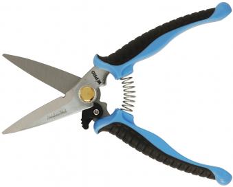 Ножницы универсальные WIPRO МАСТЕР 07-541 - многофункциональный инструмент для сада и дома. Лезвие из нержавеющей стали обеспечивает точность реза. Оснащены удобной пластмассовой ручкой с резиновым покрытием. Режет следующие материалы: нерж. Лист толщиной до 0,3 мм, медный и алюминиевый провод толщиной до 1 мм, алюминиевый лист толщиной до 0,4 мм.