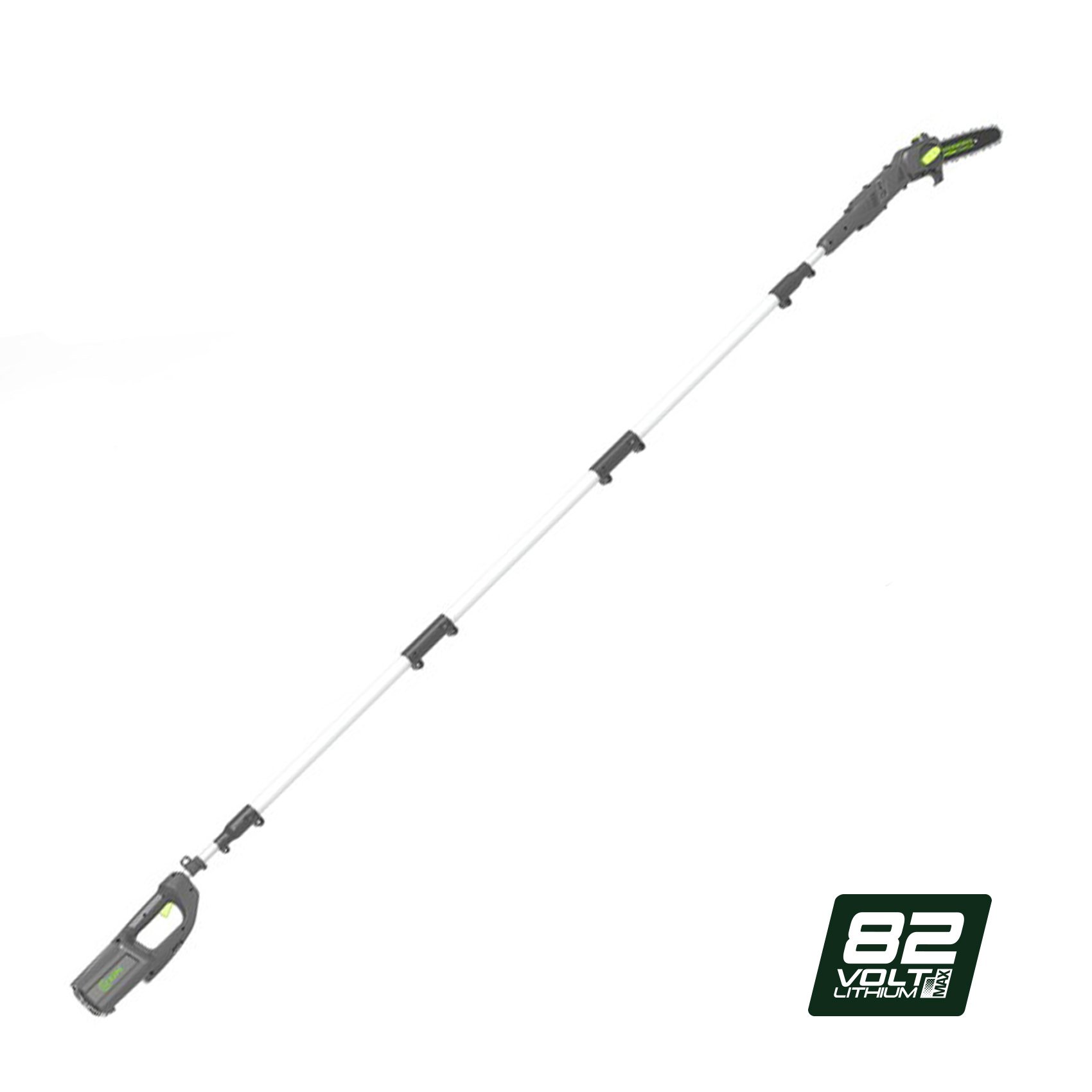 Высоторез-сучкорез садовый аккумуляторный Greenworks серии 82 вольт - это профессиональный инструмент для подрезки ветвей и сучьев на высоте до 4,5 метров. Основной особенностью этой модели является 4-х секционная металлическая штанга, за счет чего максимальная длина устройства составляет 255 см.