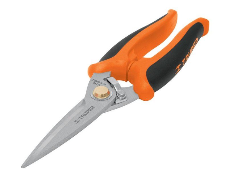 Садовые ножницы TRUPER 8" ТIMU-8 18493 представляют собой инструмент с удлиненными лезвиями для проведения различных работ на садовом участке, например, подрезания тонких веток, цветов, зелени и т.п. Лезвия изготовлены из нержавеющей стали. Ножницы обладают двухкомпонентными рукоятками и фиксатором лезвий для безопасного и удобного хранения.
