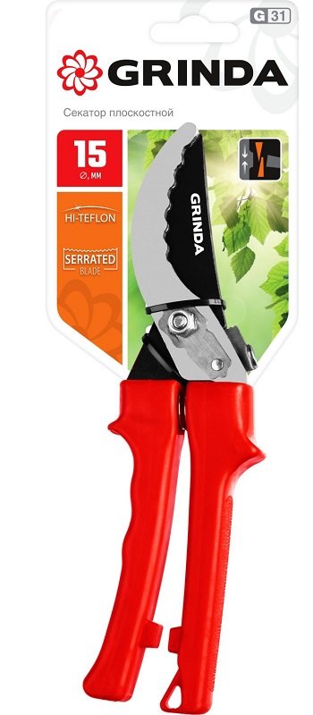Секатор Grinda 40212_z02, применяется для обрезки веток деревьев и кустарников, а также стеблей цветов. Лезвие изготовлено из высококачественной углеродистой стали, остро заточено и закалено. Тефлоновое покрытие защищает лезвие от воздействия окружающей среды и увеличивает срок службы секатора. Эргономичные пластиковые рукоятки снижают утомляемость во время работ.