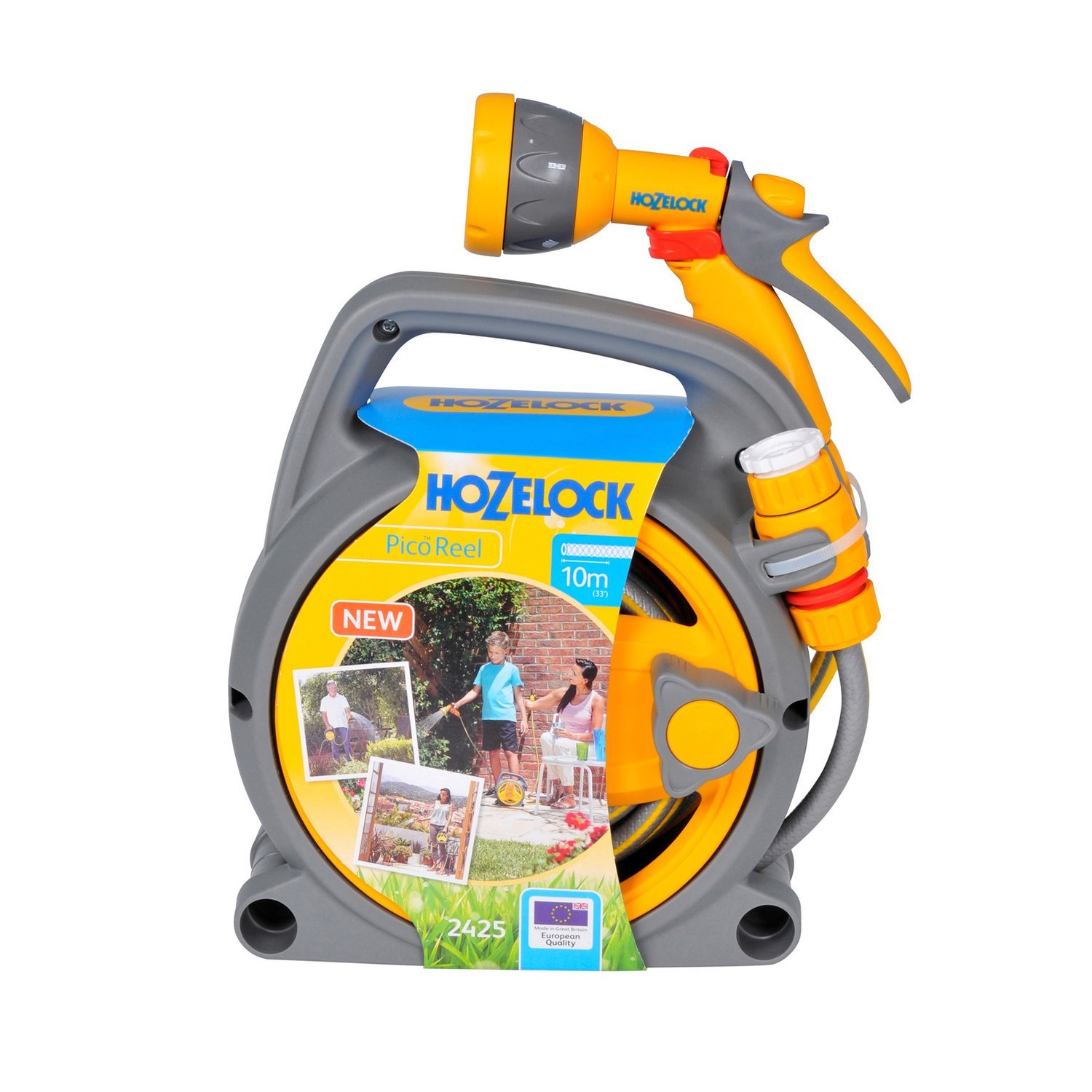 Катушка Hozelock Pico представляет собой стильное и простое решение, позволяющее облегчить работу в саду. Разработанная экспертами специально для небольших садов, патио, оранжерей, зимних садов, это целая система, состоящая из катушки, шланга длиной 10 метров, поливочного пистолета, а также соединительных фитингов.