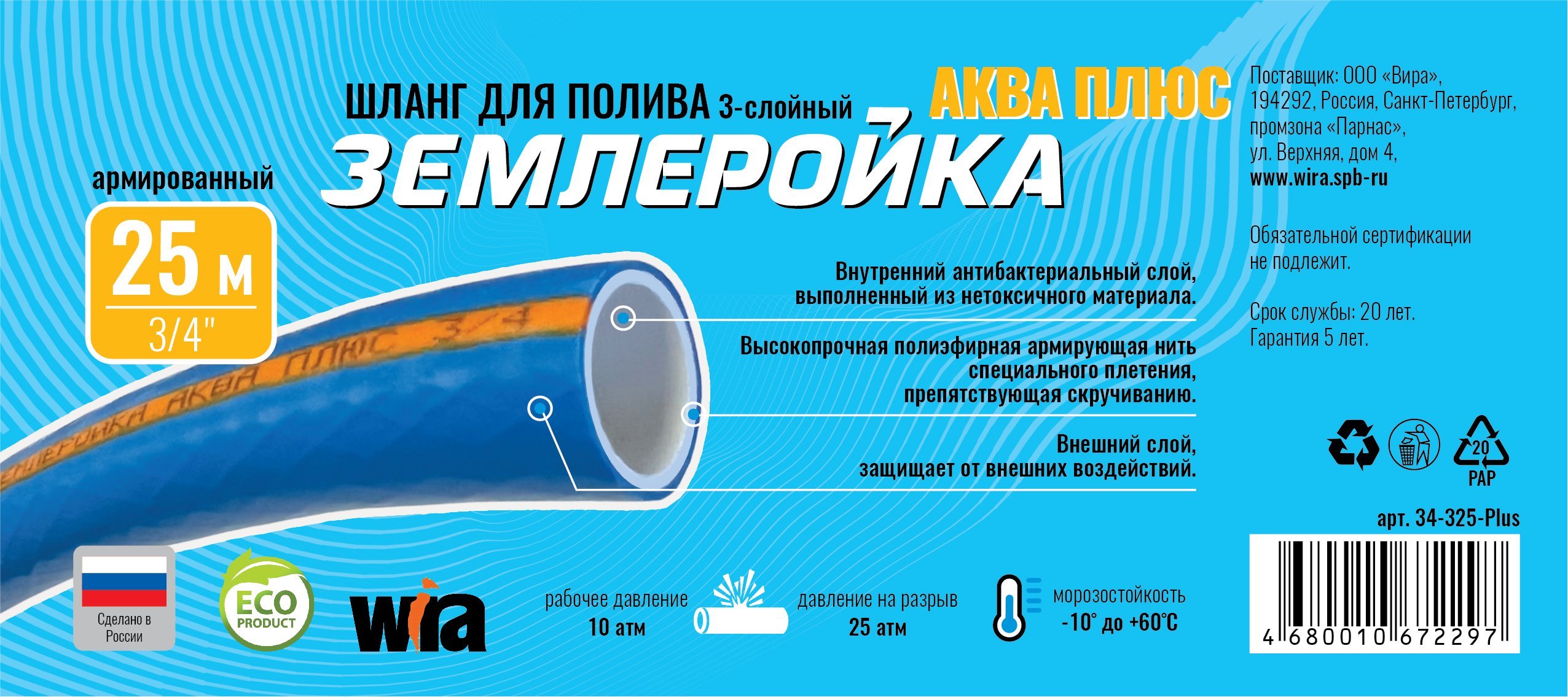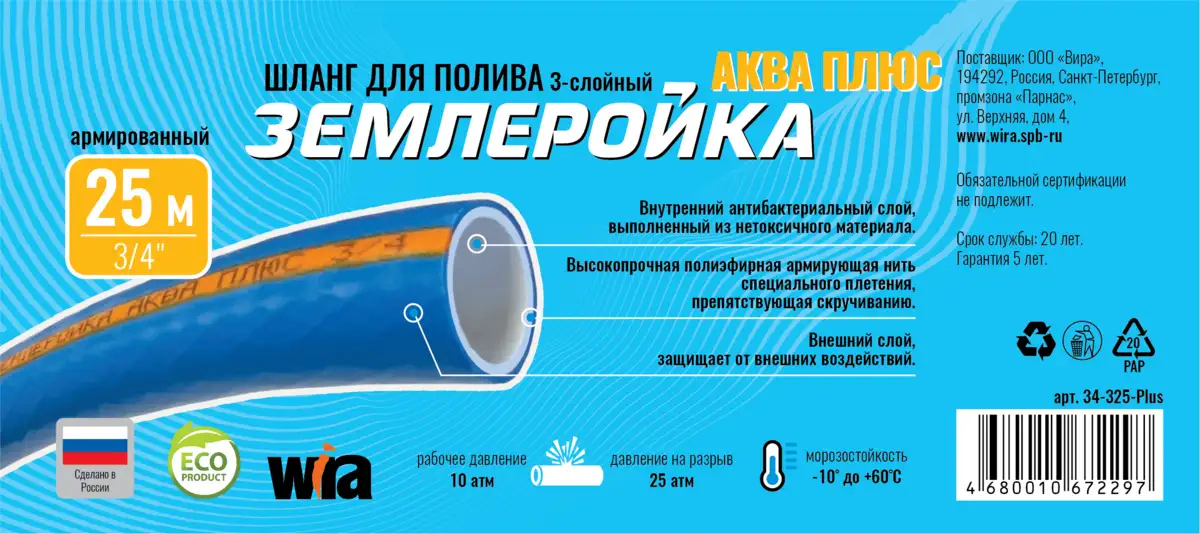 *Пожалуйста, сверяйте информацию о товаре 34-325-Plus Шланг поливочный Землеройка-Аква Плюс 3/4" 25м 3-х слойный с информацией на официальном сайте производителя. Внешний вид товара, его комплектация и характеристики могут изменяться производителем без предварительного уведомления.
