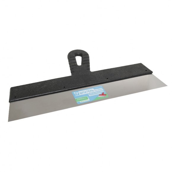 Профилированное полотно шпателя изготовлено из высокоуглеродистой нержавеющей стали, прошедшей специальную термическую обработку для придания ей свойств «памяти» (при изгибе лезвие принимает исходное положение). Пластмассовая рукоятка надежно скреплена с полотном и оснащена отверстием для подвески.