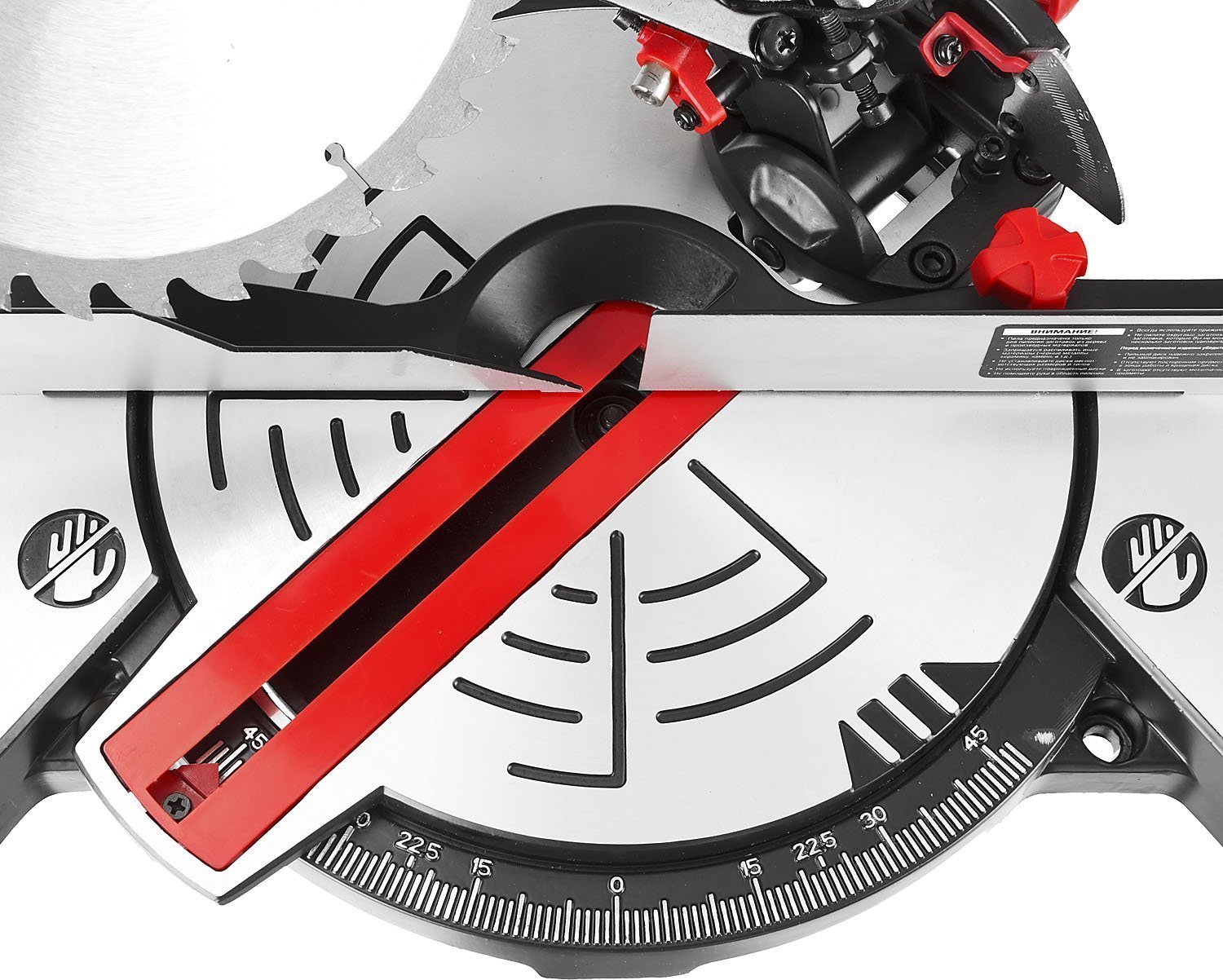 - Фиксирующийся в любом положении поворотный стол и удобная регулировка наклона облегчают установку угла пиления