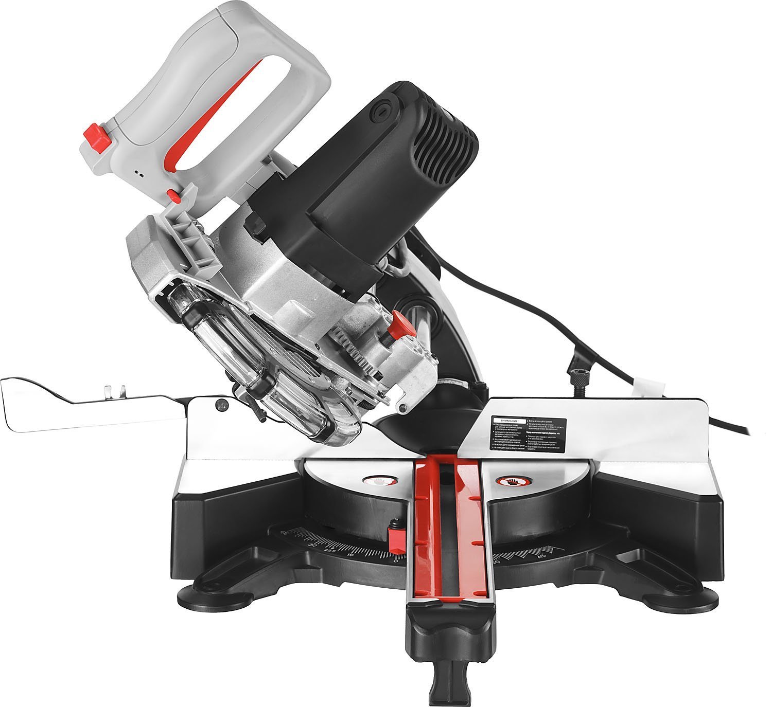 - Фиксирующийся в любом положении поворотный стол и удобная регулировка наклона облегчают установку угла пиления