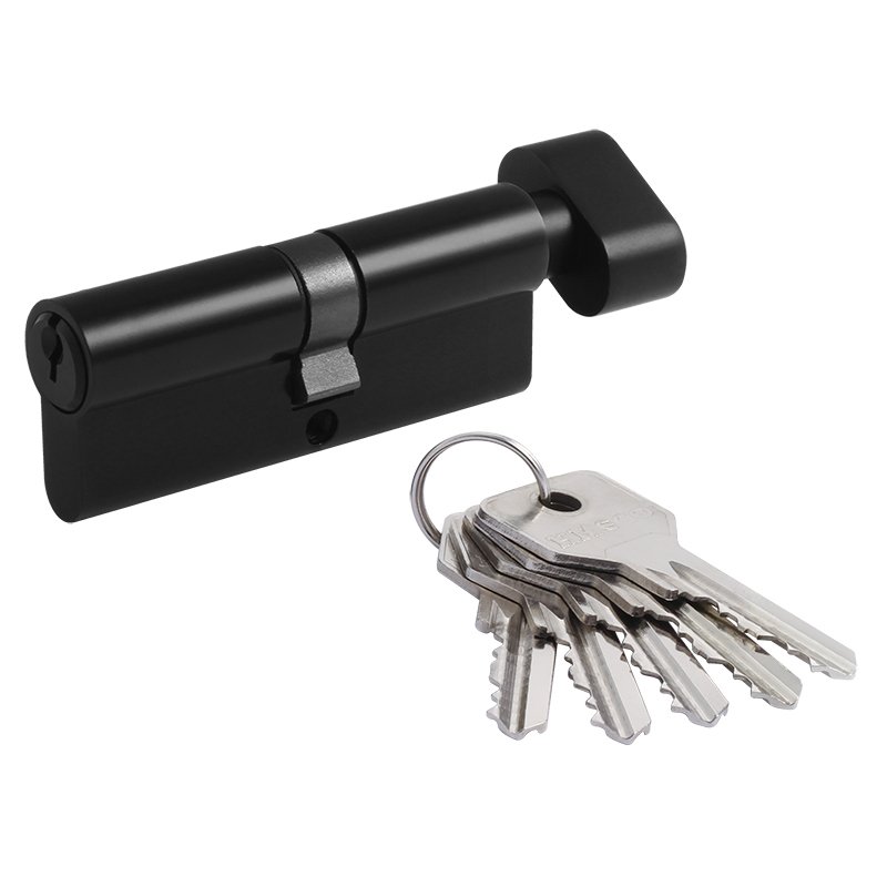 Цилиндр для межкомнатных и входных дверей. Материал ЦАМ (сплав цинка, алюминия и меди). В комплекте 5 стальных английских ключей. 5-6 пинов в зависимости от размера. Длину цилиндра подбирайте исходя из толщины двери, с небольшим запасом под накладку. Гарантия на работу цилиндра 1 год.