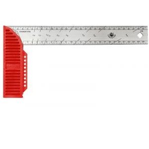 Специальный выступ на рукоятке. Три угла в месте крепления обуха мерной ленты. Для удобства разметочных работ 22.5, 45 и 67,5 градусов. Мерная лента из нержавеющей стали. Функция транспортира. Двусторонняя разметка мерной ленты. Выверенный угол 90 градусов.