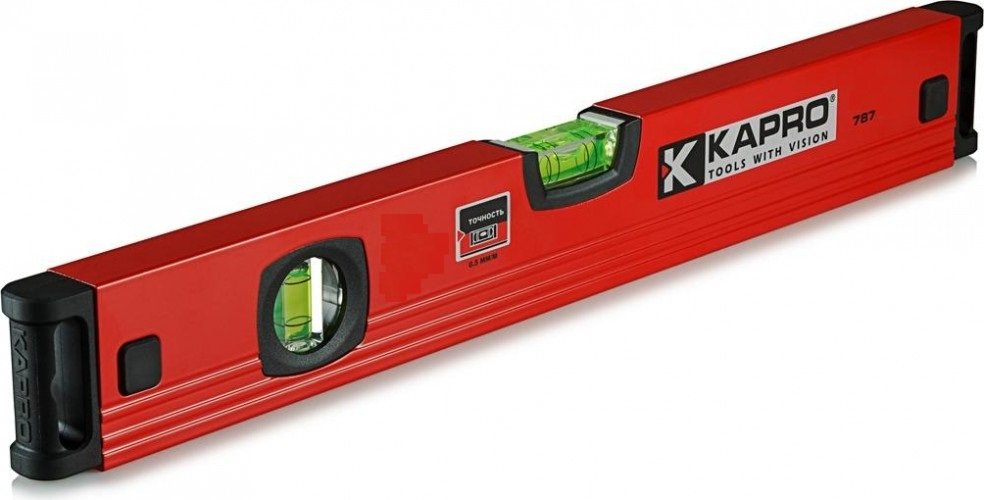 Данный уровень Kapro имеет 2 ударопрочные тестированные колбы из полиакрила, которые посажены на качественный эпоксидный клей и выполняют свою функцию, контроль за вертикалью и горизонталью.
