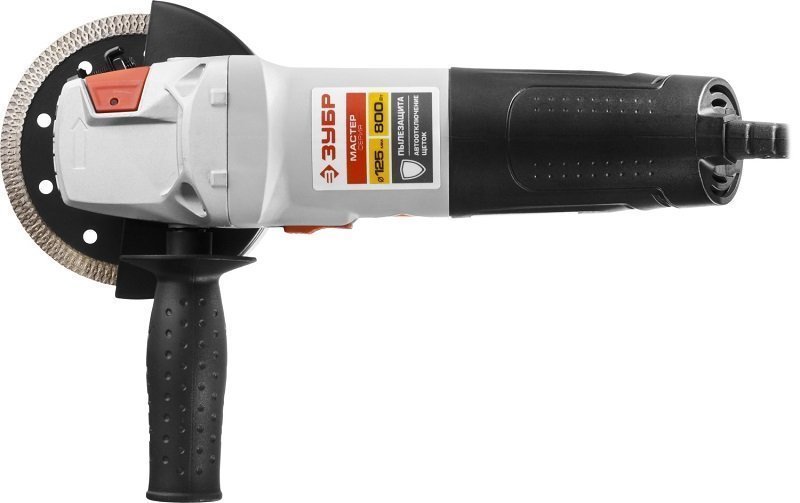 Машина шлифовальная угловая УШМ-125-800 М3 УШМ ЗУБР применяется для зачистки, шлифовки и резки металлов, обработки бетона и камня при установке соответствующего расходного инструмента.