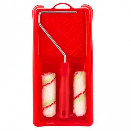 Малярный набор для работ с эмалями Сибртех 80453 состоит из двух сменных мини-валиков шириной 110 мм, бюгеля и кюветы размером 150 мм х 290 мм. Валики подходят для нанесения эмалей и других ЛКМ с агрессивными веществами в составе. Шубки из полиамида и полиакрила хорошо удерживают форму, имеют повышенную износостойкость, высокий коэффициент впитываемости и отдачи краски, а их волокна не остаются на поверхности, что гарантирует высокое качество окрашивания. Преимущества: Удобное окрашивание небольших поверхностей — мини-валики имеют ширину 110 мм, поэтому подходят даже для труднодоступных участков. Прочная кювета — она выполнена из высококачественной пластмассы и устойчива к механическим нагрузкам. Экономный расход лакокрасочных материалов — благодаря специальной конструкции кюветы излишки краски стекают в ванночку, а не скапливаются на раскаточной доске. Комфортная эксплуатация — эргономичная рукоятка бюгеля обеспечивает удобный захват, что снижает усталость мастера во время длительной работ.